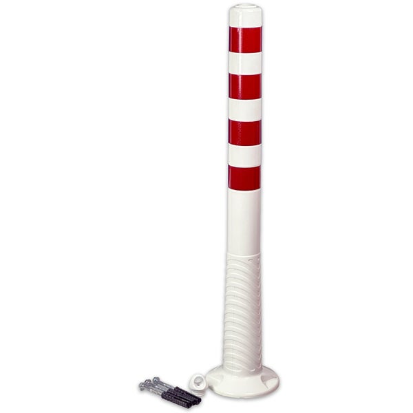 1 Stück Absperrpfosten Poller flexibel weiß, rote reflektierende Folie, selbstaufrichtend inkl. Befestigung 100cm