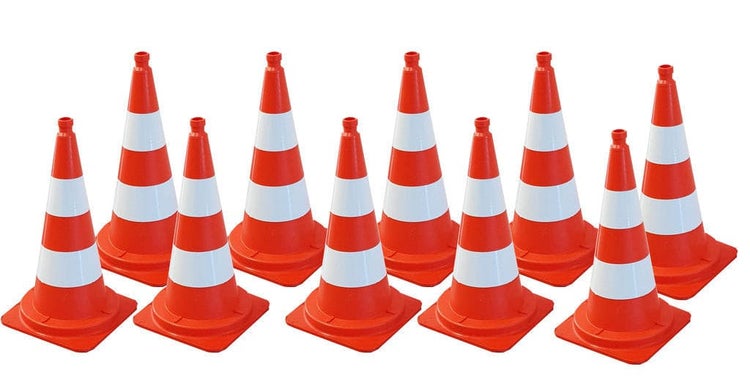 Lieferumfang: 10 Stück Leitkegel 75 cm (Lieferung in 2 Kartons a 5 Stück)