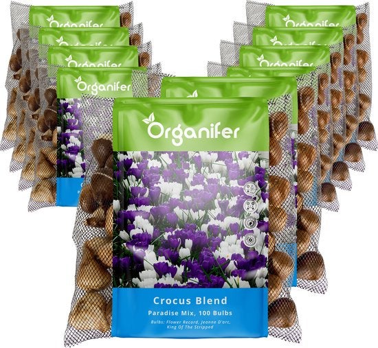 1000 Krokuszwiebeln - Großblütige Paradiesmischung - XXL 8/9 cm - Organifer
