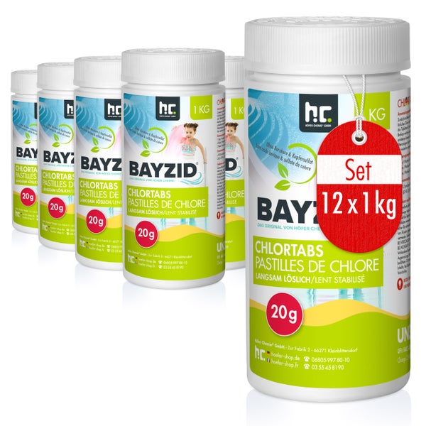 - Im Lieferumfang enthalten12 x 1 kg BAYZID® Chlortabs 20g langsam löslich