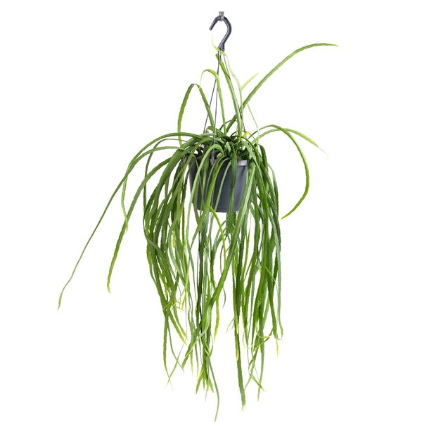 Das Lepismium Bolivianum ist eine wunderschöne und besondere Zimmerpflanze, die Ihr Interieur bereichern wird. Mit seinen langen, herabhängenden Stielen und grünen Blättern bringt er eine verspielte und zugleich beruhigende Wirkung in Ihr Zuhause. Darüber hinaus ist diese Pflanze pflegeleicht und reinigt die Luft, sodass Sie nicht nur ihre Schönheit, sondern auch die Vorteile für Ihre Gesundheit genießen können. Warum Pflanzen wählen? von WL Plants? • EINZIGARTIGE DEKORATIVE PFLANZE: Das Lepismium Bolivianum ist eine einzigartige und charaktervolle Zimmerpflanze, die zu einem natürlichen und frischen Aussehen Ihrer Inneneinrichtung beiträgt. Mit ihren langen, herabhängenden Stielen und grünen Blättern ist diese Pflanze ein echter Hingucker in jedem Zuhause. • LUFTREINIGEND: Das Lepismium Bolivianum ist eine luftreinigende Pflanze, die reinigt die Luft in Ihrem Raum und sorgt für eine bessere Luftqualität. Diese Pflanze verbessert nicht nur die Atmosphäre in Ihrem Raum, sondern auch Ihre Gesundheit. • PFLEGELEICHT: Das Lepismium Bolivianum ist eine Pflanze, die wenig Pflege benötigt und daher pflegeleicht ist gepflegt werden kann. Geben Sie der Pflanze gelegentlich etwas Wasser und achten Sie darauf, dass sie keiner direkten Sonneneinstrahlung ausgesetzt ist. Die Pflanze gedeiht am besten in einer hellen und luftigen Umgebung mit einer durchschnittlichen Raumtemperatur. • NACHHALTIG: Alle unsere Zimmerpflanzen werden in den Niederlanden von professionellen Züchtern angebaut, die strenge Standards einhalten von Nachhaltigkeit und Qualität. Auf diese Weise garantieren wir nicht nur eine gesunde und schöne Pflanze, sondern auch einen nachhaltigen Kauf. • GUT VERPACKT, SCHNELL GELIEFERT: Das Lepismium Bolivianum wird sorgfältig verpackt und direkt vom Züchter geliefert an den Kunden. Dies bedeutet, dass die Pflanze bei der Ankunft frisch und in Top-Zustand ist, was eine längere Lebensdauer gewährleistet. • UNSER VERSPRECHEN: WL Plants bietet nur Pflanzen und Pflanzenzubehör von bester Qualität. Darüber hinaus steht der Kunde bei uns immer an erster Stelle. Wenn Sie eine Frage oder ein Problem haben, sind wir immer für Sie da. Was ist in der Box?1x Lepismium Bolivianum ProduktspezifikationenAbmessungen:• Pflanzenlänge ca. 30 cm (einschließlich Hängetopf). )• Durchmesser des Topfes: 17cm• Bitte beachten! Dies ist ein lebendes Produkt. Die Abmessungen können geringfügig variieren.