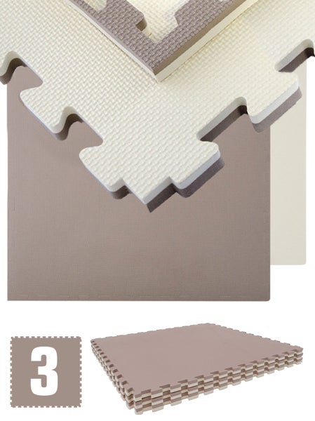 2,4qm Fitnessmatte - 3er Set 90x90x2,5cm Bodenschutzmatte Beige Braun