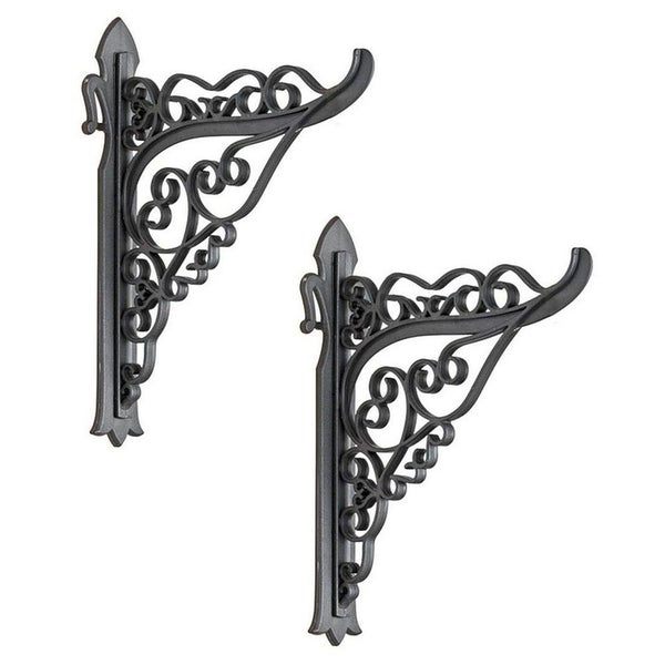 Reich verzierte Wandhalterungen im Landhausstil für Blumenampel oder Laterne.