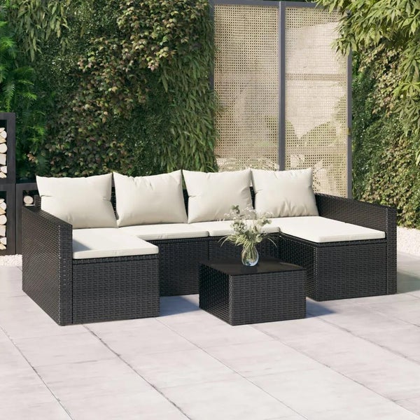 2-tlg. Garten-Lounge-Set mit Kissen Schwarz Poly Rattan