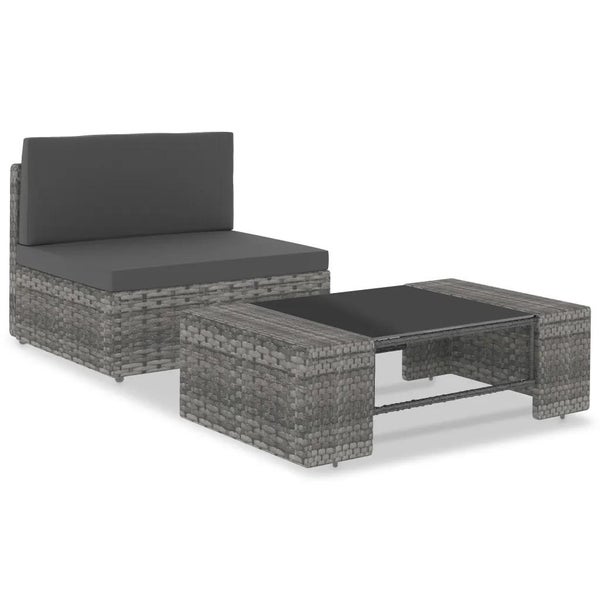 2-tlg. Garten-Lounge-Set Poly Rattan Grau