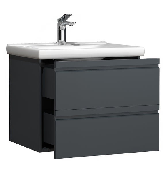 Das VCM Badmöbel-Set Silora besteht aus einem Unterschrank und einem Waschbecken aus massiver Keramik.