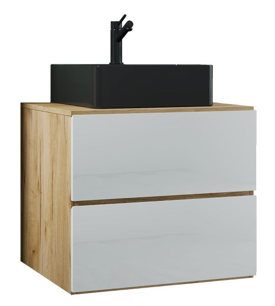 Das Badmöbel-Set besteht aus einem Unterschrank mit zwei Schubladen auf robusten Metallschienen. Das Möbel ist mit einer praktischen Push-to-open-Funktion ausgestattet.
