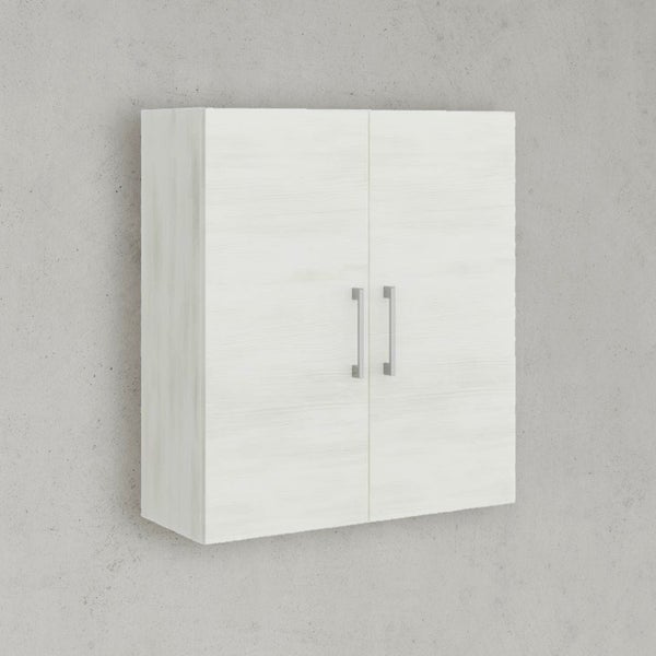 Der hängende Badschrank mit 2 Türen in Weiß-Eiche von KVstore bietet eine kostengünstige und effiziente Möglichkeit, den Stauraum im Badezimmer zu erweitern. Die stabile Struktur besteht aus melaminbeschichteter Spanplatte mit 2 mm ABS-Kanten und einer eleganten weißen Eichenoptik. Die Türen sind mit verchromten ABS-Griffen ausgestattet. Im Inneren befindet sich ein Glasboden, der zusätzlichen Platz für allerlei Zubehör schafft. Der Schrank wird vormontiert geliefert und ist kompatibel mit der beliebten Rimini-Badmöbelserie. Das Befestigungsmaterial für die Wandmontage ist nicht im Lieferumfang enthalten.
