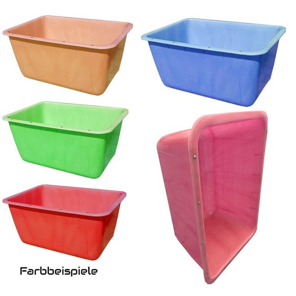 Restposten, Sonderpreis - Mörtelkübel, Mörtelwanne ohne Kranösen, mit Flachstahl Rahmenverstärkung, Farben bunt gemischt (oder gelb) - 200 Liter Behälter für viele Einsatzzwecke. Die Preiswerte Lösung, wenn die Farbe keine Rolle spielt. Eine Wanne wiegt >14 kg.