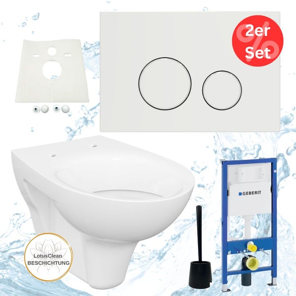 • 2x Design-Wand-Tiefspül-WC (weiß, mit LotusClean Beschichtung)