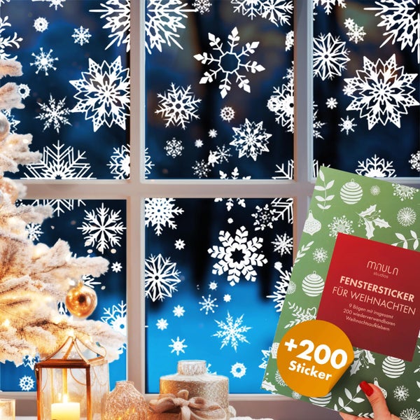 200 Fensterbilder Weihnachten Schneeflocken - Weihnachtsdeko Fenster Selbstklebend - Wiederverwendbare Fenster Aufkleber - Weihnachten Fenster Deko - Fensterbilder Weihnachten