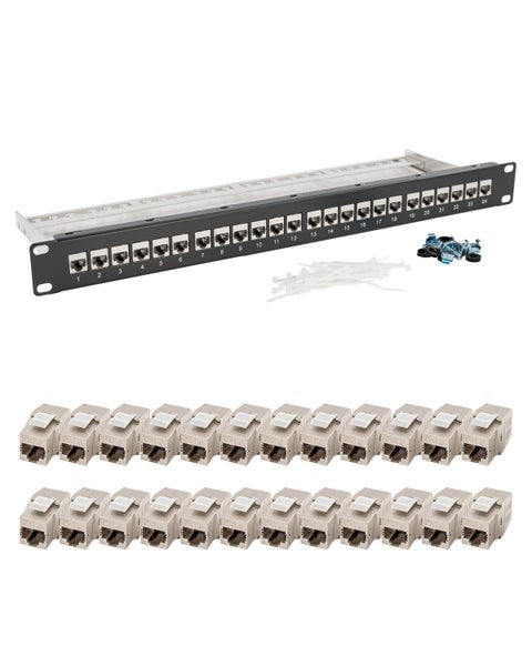 - Im Lieferumfang enthalten24x Cat. 8.1 Keystone Jacks, 1x 24 Port Keystone Patchpanel
