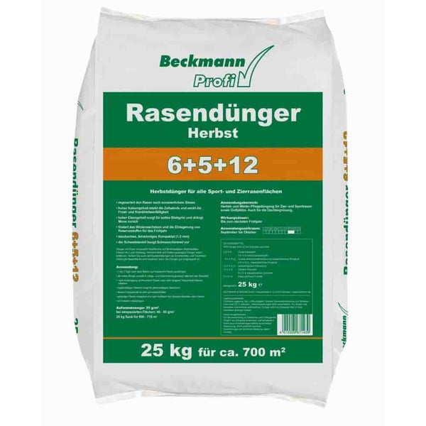 25 kg Rasendünger Herbst Beckmann NPK-6+5+12 f.ca. 700m²