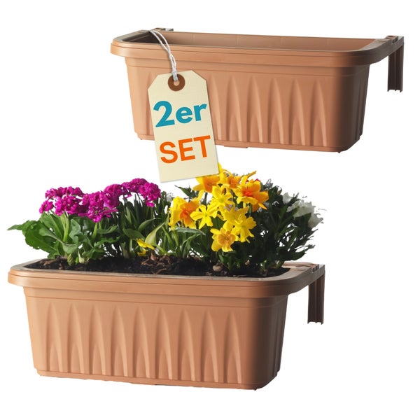 2er Set Blumenkasten Balkongeländer Balkon Blumenkasten Balkonkasten mit Halterung Balkonkasten Geländerkasten Balkonkasten mit Wasserspeicher 50 cm Terrakotta
