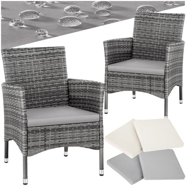2er Set Rattanstuhl tectake Nantes 59 x 57 x 85 cm widerstandsfähig grau/hellgrau