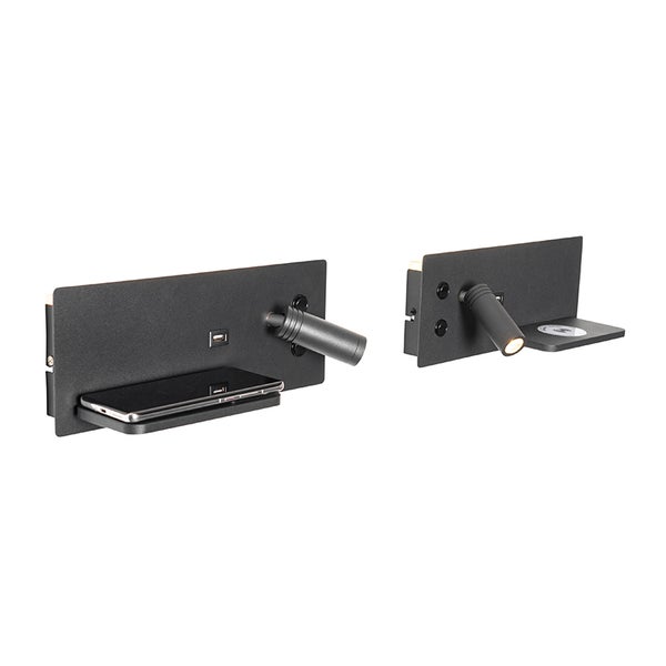 2er Set Wandleuchte schwarz inkl. LED mit USB und Induktionsladegerät - Riza