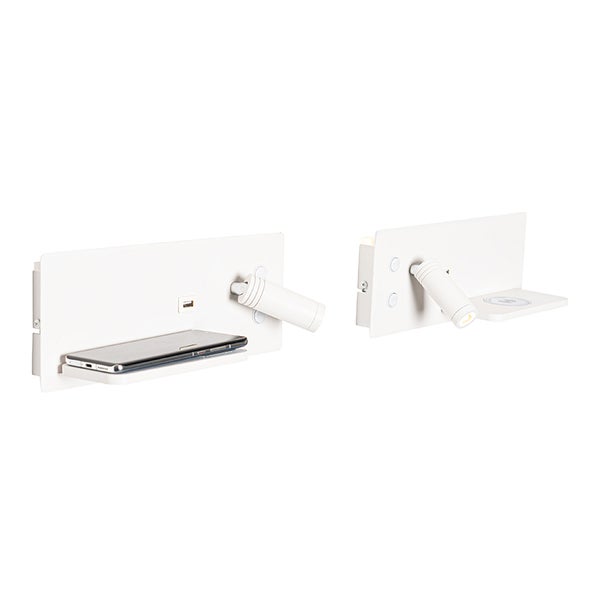 2er-Set Wandleuchten weiß inkl. LED mit USB und Induktionsladegerät - Riza