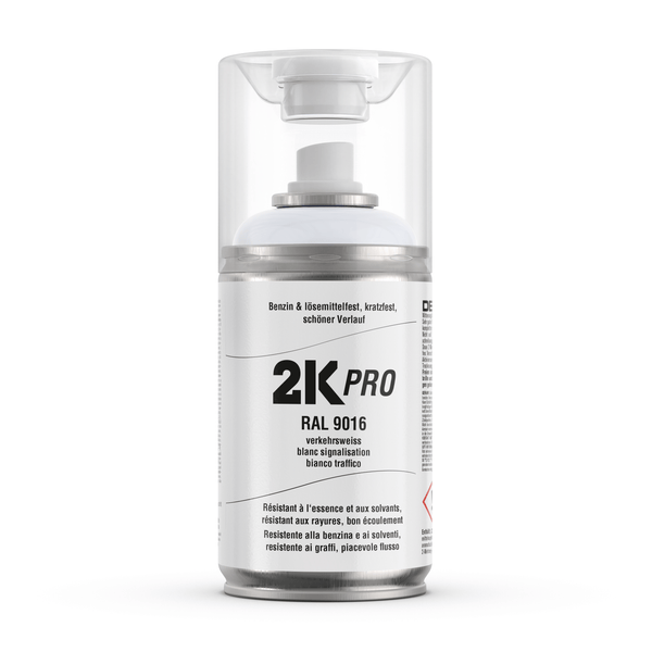 2K PRO 2 Komponenten Sprühfarbe 250ml RAL9016 Verkehrsweiss Glanz
