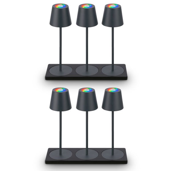 Ideal für stimmungsvolle Abende zu Hause, in Bars oder Restaurants: Dieses Vorteilspack enthält zwei 3er-Sets und bietet damit sechs LED-Leuchten, die gemeinsam Atmosphäre an jeden Tisch bringen. Alle sechs Tischleuchten lassen sich gleichzeitig über einen Stecker laden - perfekt als Gastro-Set für den professionellen Einsatz oder größere Runden im privaten Bereich.