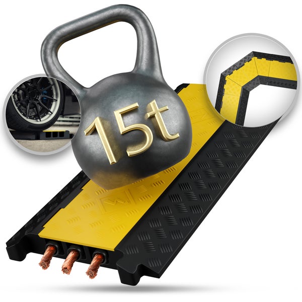 3 Kanal Kabelbrücke mit Deckel überfahrbar Stolperschutz Rampe Brücke Protektor | 15 t Tragkraft | Gummi