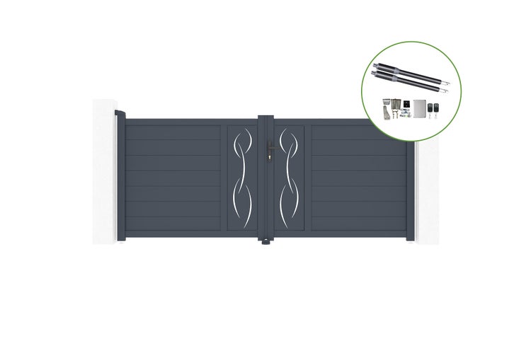 3 m LIFE-Schwingtor H.120 cm aus Aluminium + RANGER B150-Motorisierung