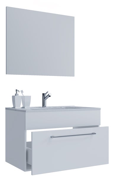 Das Badmöbel-Set besteht aus einem Unterschrank mit einer Schublade.
