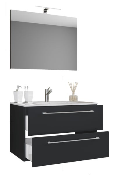 Das Badmöbel-Set besteht aus einem Unterschrank mit zwei Schubladen.
