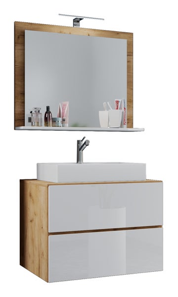 - Artikel besteht aus: Waschtisch, Waschtischunterschrank, Spiegel