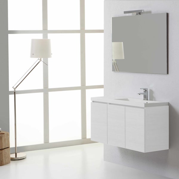 - KomponentenmaßeGrundmaße: Breite 90 cm, Tiefe 39 cm, Höhe 50 cm. Waschbecken: Breite 90 cm, Tiefe 39 cm, Höhe 4 cm. Waschtisch 12,5 cm tief. Spiegel: Breite 90 cm, Dicke 2,5 cm, Höhe 70 cm.