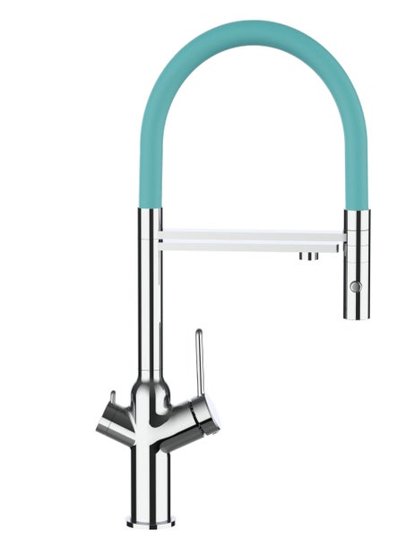 3 Wege Wasserhahn Küchenarmatur, BOD, mit 360° schwenkbarem Auslauf, abnehmbare 2 strahl Handbrause, Verchromt / Türkis