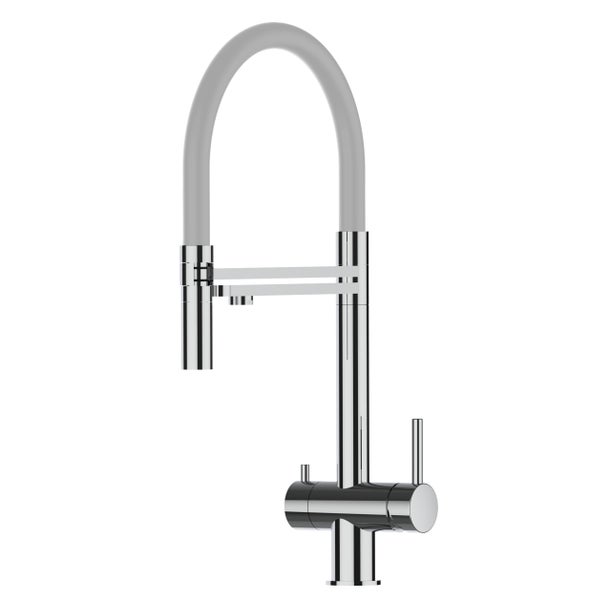 3 Wege Wasserhahn Küchenarmatur, Edelstahl Massiv mit 360° schwenkbarem Auslauf, abnehmbare 2 strahl Handbrause, Hochglanz / Grau