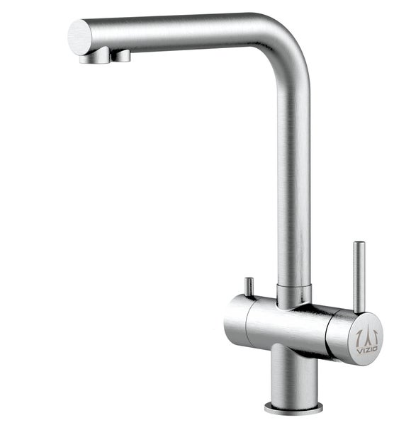 3 Wege Wasserhahn Küchenarmatur, Edelstahl Massiv mit 360° schwenkbarem L-Auslauf, Gebürstet