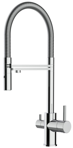 3 Wege Wasserhahn Küchenarmatur Spültischmischer FL, Verchromt, mit 360° schwenkbarem Auslauf und abnehmbare 2 strahl Handbrause - für Kalt-,Warm- und Filterwasser mit separatem Ventil am Hahn und separatem Kanal für gefilterte Wasserentnahme