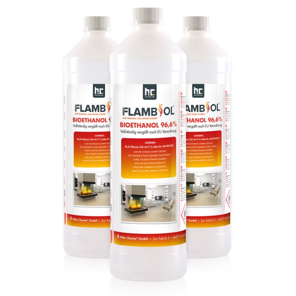 3 x 1 L FLAMBIOL® Bioethanol 96,6% Premium für Ethanol-Tischkamin