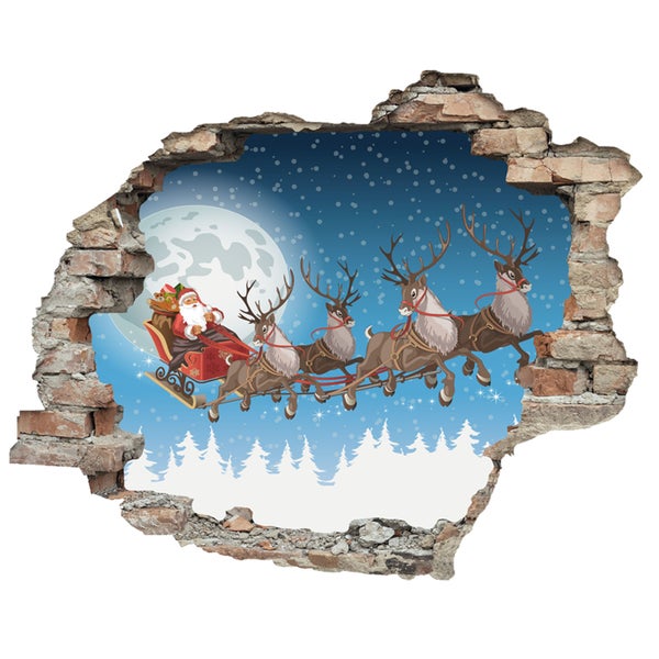 3D Wanddurchbruch selbstklebender Sticker Fliegender Weihnachtsmann WS16029_60x50 cm Weihnachten Deko für die Wand