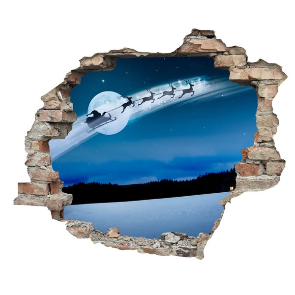 3D Wanddurchbruch selbstklebender Sticker Weihnachtsmann im Schlitten bei Nacht WS16030_60x50 cm