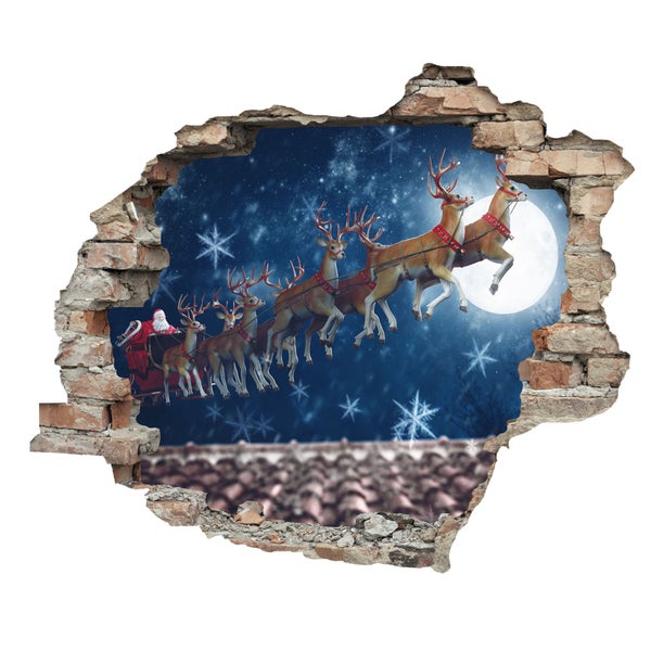 3D Wanddurchbruch selbstklebender Sticker Weihnachtsmann über den Dächern WS16034_60x50 cm