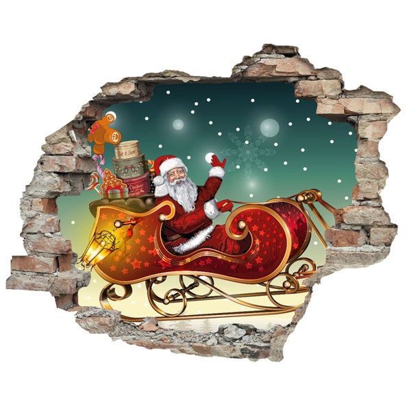 3D Wanddurchbruch selbstklebender Sticker Weihnachtsmann WS16032_60x50 cm Weihnachten Deko für die Wand