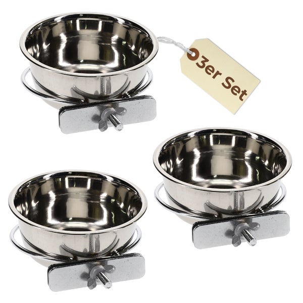 3er Set Edelstahlnapf zum Einhängen 0,15 L mit Schraubenhalterung Vogelnapf Hundenapf Hasen Kaninchen Katzen Napf Futter Wasser Napf