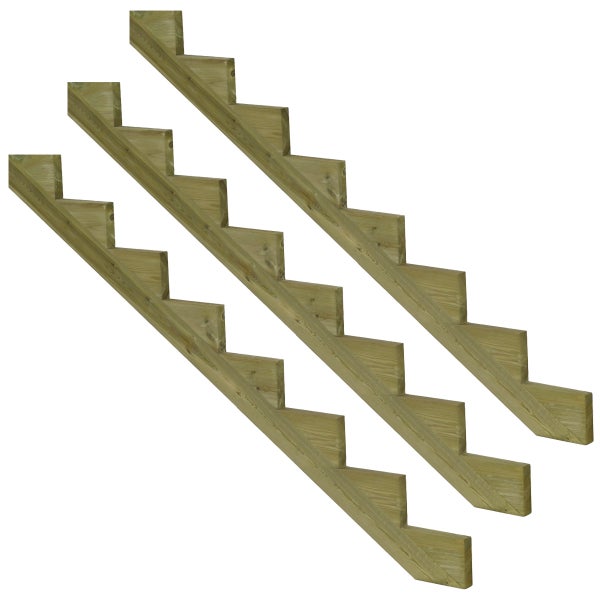 3er Set Treppenwange 8 Stufen aus KDI Holz für Gartentreppe, Außentreppe, Terrassentreppe n-Höhe 136cm