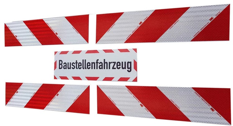 3M Kfz-Warnmarkierung DIN30710 Folie 4 x 564*141 + Zusatzschild / Baustellenfahrzeug 45x15cm