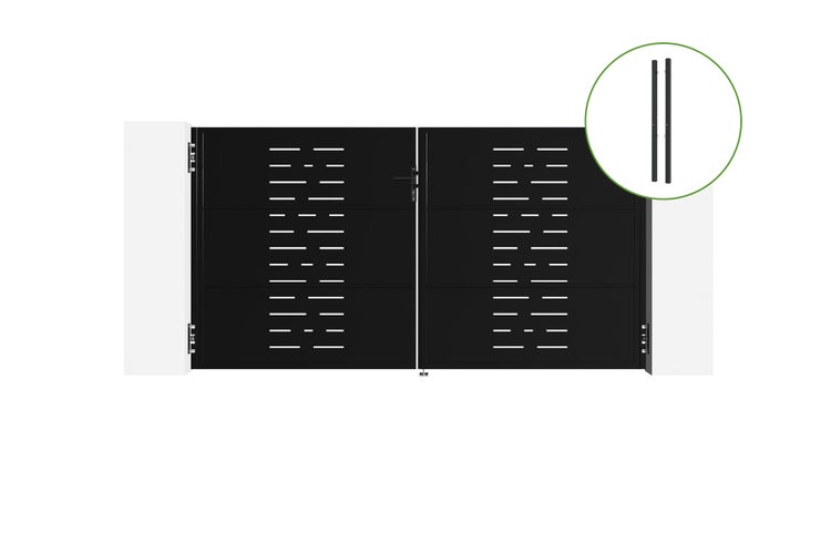 3m NALI ARLBERG H.160cm mattschwarzes Schwingtor aus Stahl + 2 DARIO Stahlpfosten