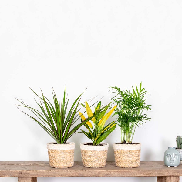 Stellen Sie sich vor, Sie wären mit dieser tropischen Zimmerpflanzenmischung in den Tropen! Diese Mischung besteht aus drei tropischen Hunks und ist auch leicht zu verstehen. Sie sind nicht nur bequem, sondern reinigen auch die Luft und sorgen für ein gesünderes Raumklima. Diese 3 Zimmerpflanzen sind alle einzigartig geformt und sorgen dafür, dass sich Ihr Haus im Handumdrehen in ein echtes Tropenresort verwandelt. Ihr wartungsfreundlicher Charakter macht sie ideal für Menschen mit leicht grünen Daumen.