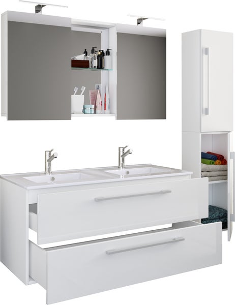 - Artikel besteht aus: Waschtisch, Waschtischunterschrank, Spiegelschrank