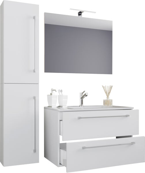 - Artikel besteht ausSpiegel, Waschtisch, Waschtischunterschrank, Hochschrank
