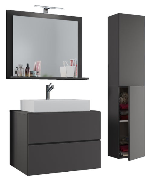 - Artikel besteht ausSpiegel, Waschtisch, Waschtischunterschrank, Hochschrank