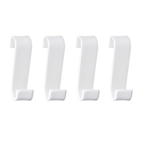 Set mit 4 Merlino-Haken aus weißem thermoplastischem Harz, zum Aufhängen am Badheizkörper, um Handtücher und Badetücher stets ordentlich und trocken zu halten.