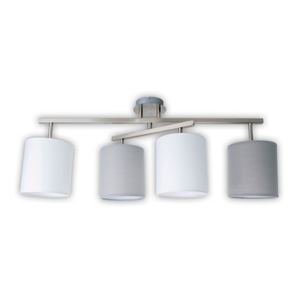 4er Deckenleuchte TILDE, klassische Deckenlampe aus Metall und Textil in Grau mit E27-Fassung, 82 cm lang, die Schirme sind verstellbar, ideal für Wohnzimmer, Esszimmer und Schlafzimmer