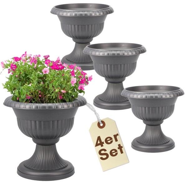 4er Set Blumentopf mit Ständer Blumensäule Standfuß Pflanztopf Grabvase Friedhofsvase Blumentopf mit Füßen Blumentopf Ständer Grau 30 cm