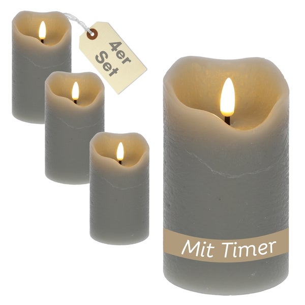 4er Set LED Echtwachskerzen mit Timer Led Kerzen mit Timerfunktion und flackernde Flamme Led Echtwachs Stumpenkerzen flackernd 7,5 x 12,5 cm Grau
